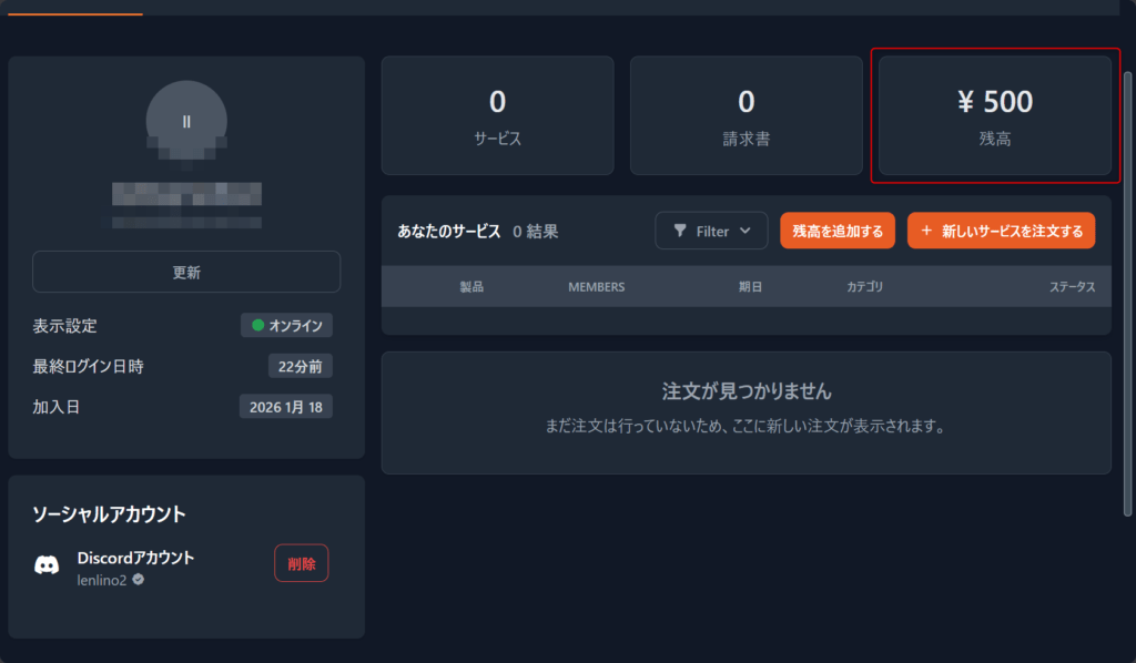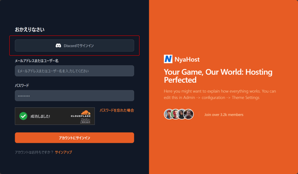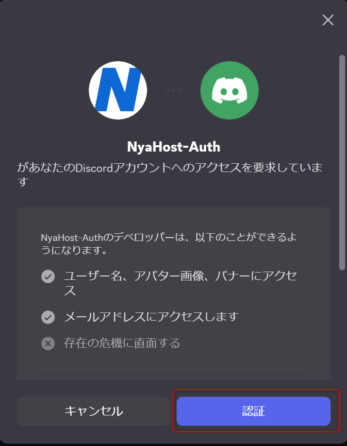 botとNyaHostで連携するためにDiscordアカウントの連携設定が必要となります。