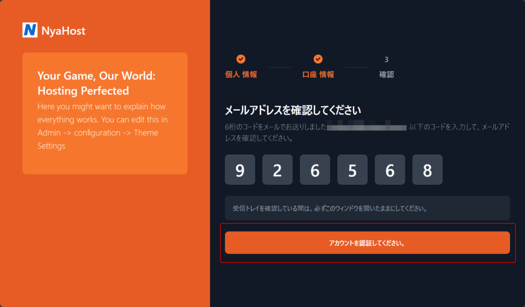 メールアドレスは必ずNyaHostに登録したものと同じものを使用してください。