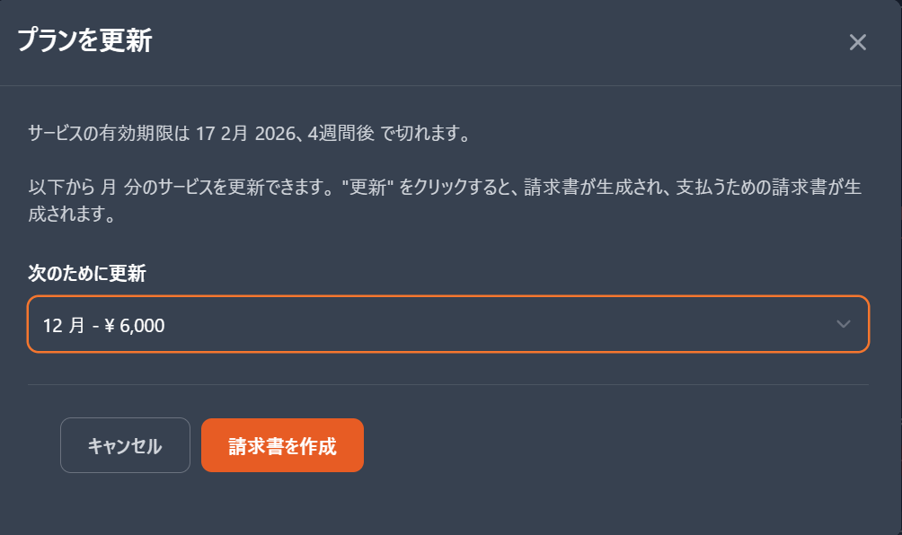 更新ボタンから最大1年先までのお支払いも可能です。(原則返金はできませんのでご注意ください。)